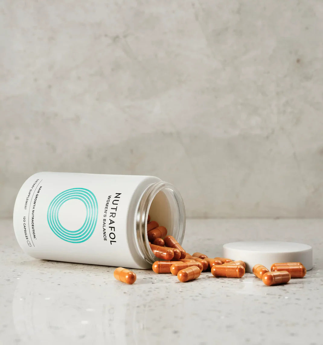 Daily hair wellness for perimenopause, menopause, and beyond. A clean, dermatologist-recommended formula supporting visible thickness, scalp coverage, and stronger-feeling strands.